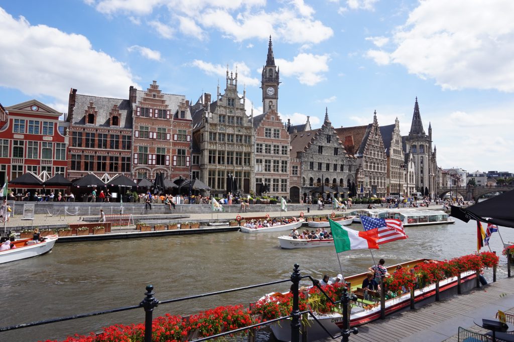 Rejsy po kanałach – bardzo popularną atrakcją w Brugii jest rejs po kanałach. Nawet się nie zastanawiajcie i wybierzcie się na taki rejs, bo widoki są wspaniałe. Przystanie znajdziecie w kilku punktach miasta, m.in. przy najpopularniejszym punkcie widokowym w mieście, Rozenhoedkaai. Za 30 minutowy rejs zapłacicie 10 euro od osoby. Takie rejsy odbywają się w Gandawie, co gorąco Wam polecamy. Łódki dopływają do miejsc, do których pieszo nie dojdziecie (m.in. do zabudowanych kanałów), a Gandawa oglądana z perspektywy rzeki prezentuje się wspaniale. Za godzinny rejs w Gandawie płaciliśmy 7,5 euro dla dorosłego i 7 euro dla studenta. Przystani jest kilka, bez problemu namierzycie jedną z nich. My płynęliśmy z firmą, której łódki przycumowane są przy moście Kleine Vismarkt. Po drugiej stronie mostu po tej stronie rzeki, gdzie znajduje się zamek, inna firma oferuje półtora godzinne rejsy za 12 euro. Strona – http://www.rederijdegentenaer.be/
