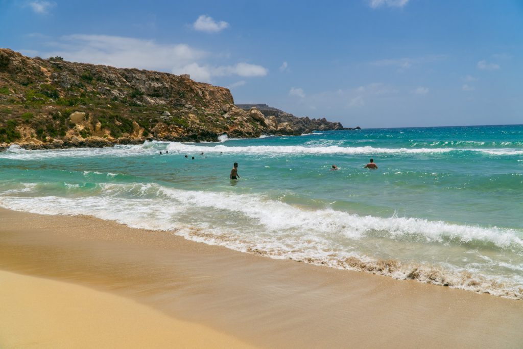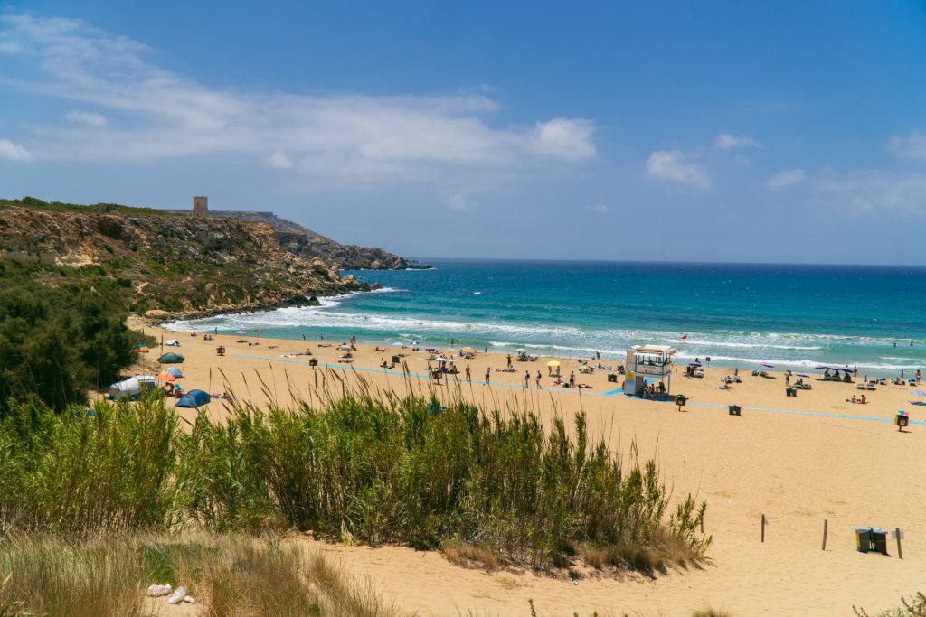 Jedna z bardziej znanych plaż na Malcie. Na miejscu byliśmy nieco zaskoczeni jej wielkością, bo okazała się mniejsza, niż się to wydawało po zdjęciach oglądanych w internecie. Ale tak czy siak, pobyt na tej plaży zrobił na nas dobre wrażenie. Piaszczysta, niezbyt długa, ale też niezatłoczona, z przyjemnym, jasnym piachem i łagodnym zejściem do czyściutkiej, turkusowej wody. Na miejscu znajdziecie porządną infrastrukturę, wygodne leżaki, parasole i sklepy. Jedno z fajniejszych miejsc na wyspie, w którym można porządnie wypocząć po intensywnym zwiedzaniu.